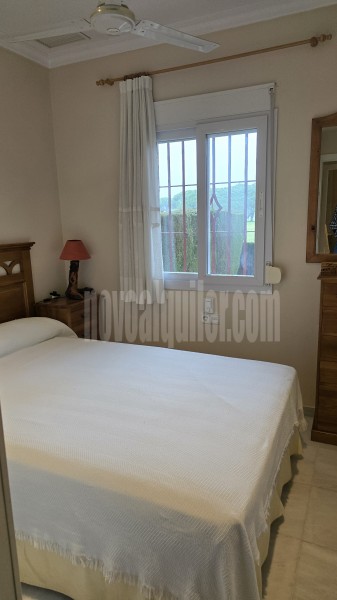Se alquila precioso APARTAMENTO (Bajo) para 4 personas con 2 dormitorios, 1 baño completo, salon-comedor, cocina independiente, porche delantero con vistas a la piscina y al campo de golf y trasero con zona de estancia, adicionalmente terraza-tendedero, jardin particular 90 m².